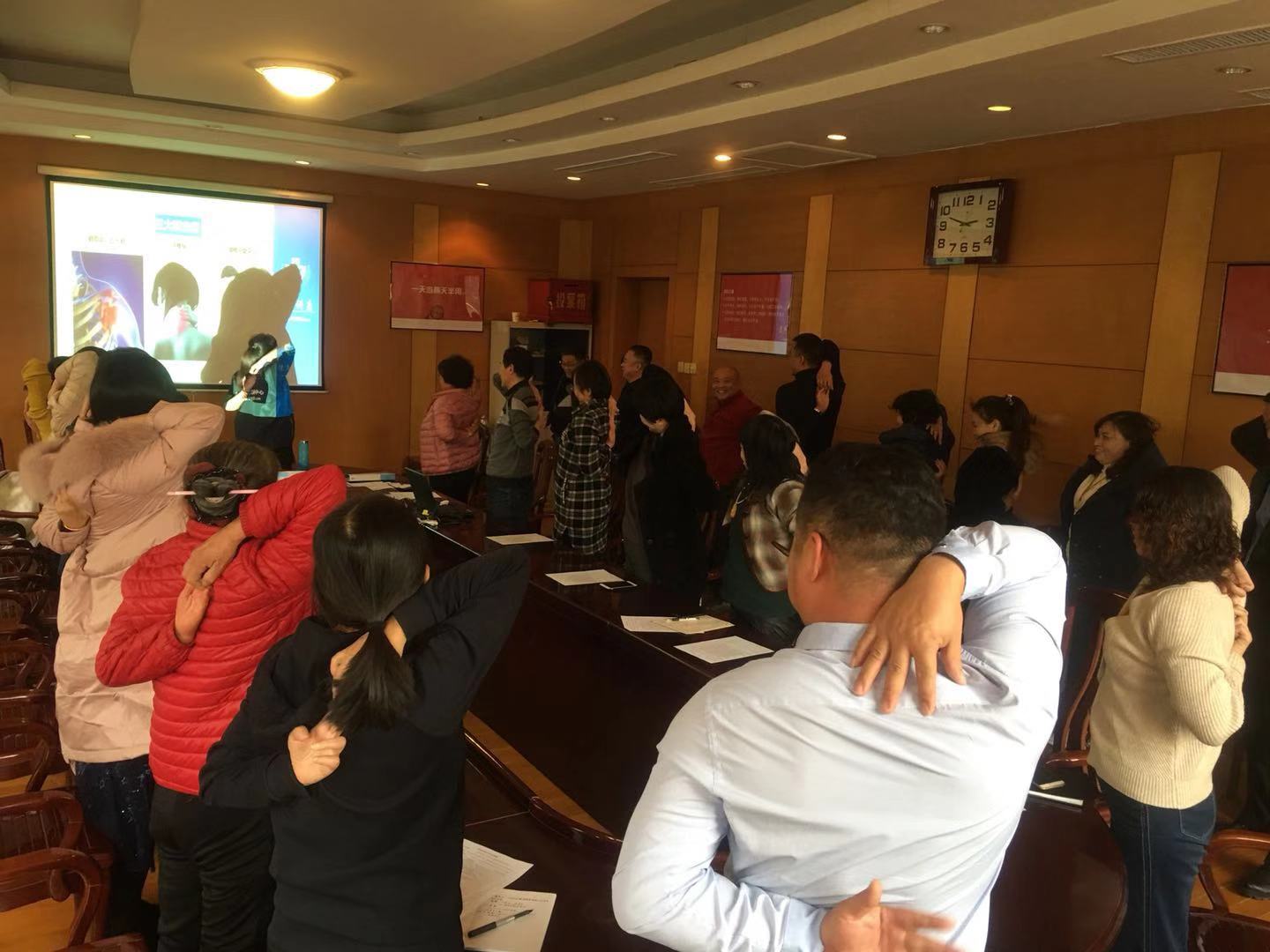 本次講座圍繞“突發(fā)意外事故衛(wèi)生應(yīng)急處置和緊急救護(hù)知識(shí)”、“霧霾的危害及防護(hù)知識(shí)講解”、“職工常見(jiàn)病、職業(yè)性疾病和慢性疾病的預(yù)防和改善”三個(gè)方面開(kāi)展。于老師為大家詳細(xì)講解了如何在突發(fā)事故中正確自救、互救,為大家普及霧霾的危害如何進(jìn)行日常防護(hù)的知識(shí),并為大家演示常見(jiàn)職業(yè)病的自我糾正及鍛煉方法。